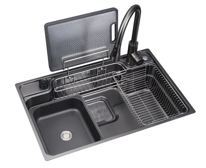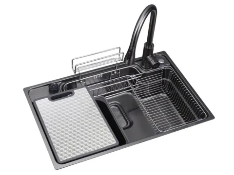 Phụ kiện: 2 rổ nhỏ, 1 chậu nhỏ, 1 thớt cao cấp, 1 tấm chắn rác.