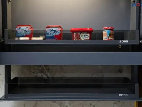 Chất liệu: Khung thép kết hợp rổ kính cường lực, bền bỉ, không gỉ sét
