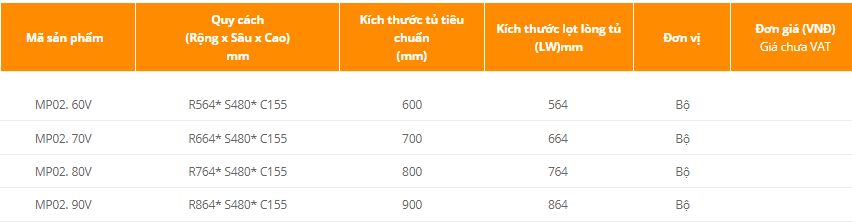 Quy cách sản phẩm: R664 x C155 x S480 mm