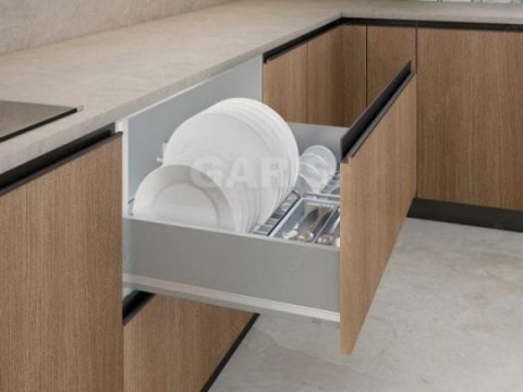 - Ưu Hóa Không Gian: Tủ bếp được thiết kế thông minh giúp tận dụng tối đa mọi ngóc ngách, mang lại không gian lưu trữ rộng rãi cho xoong nội, bát đĩa, gia vị…