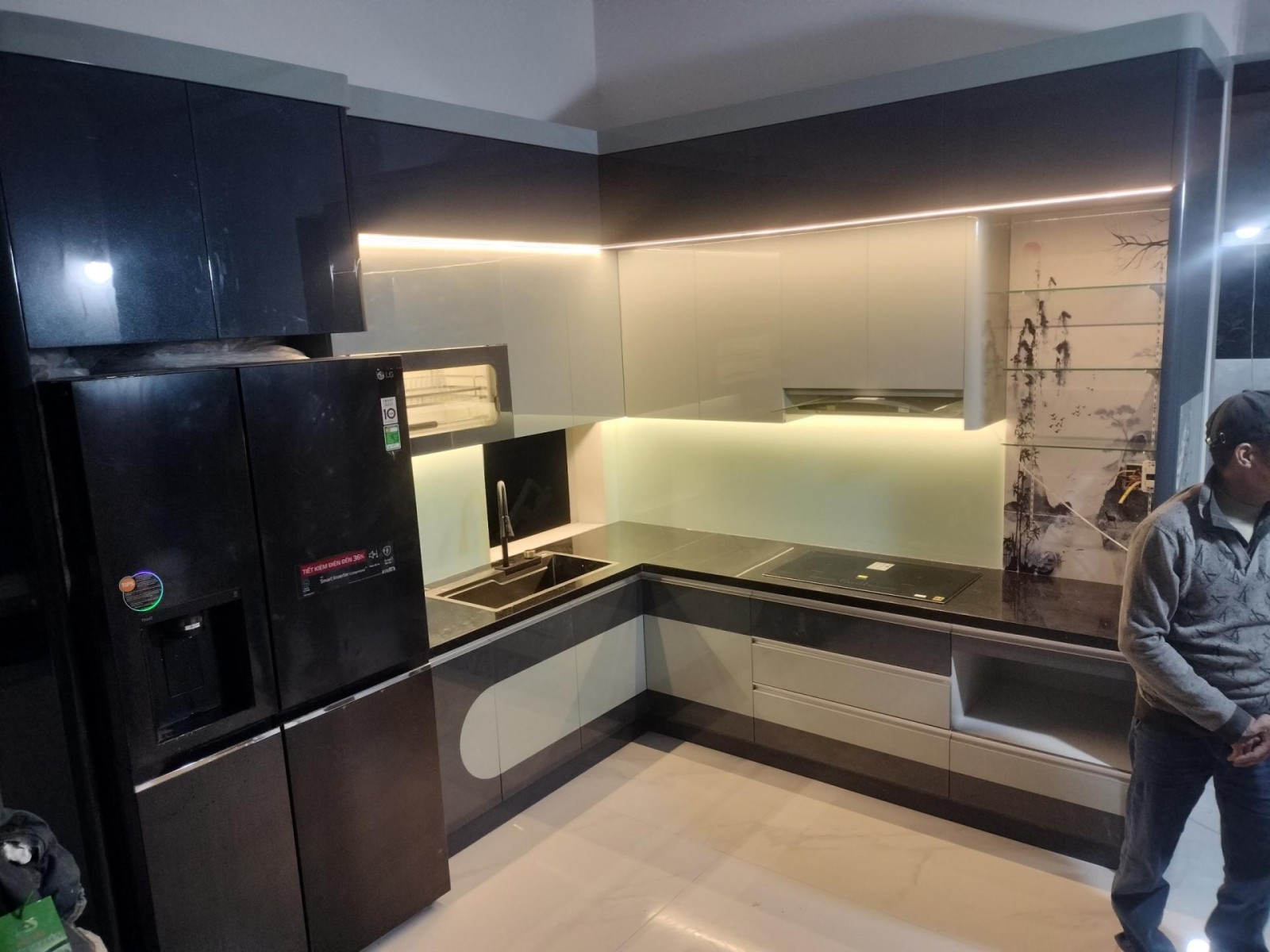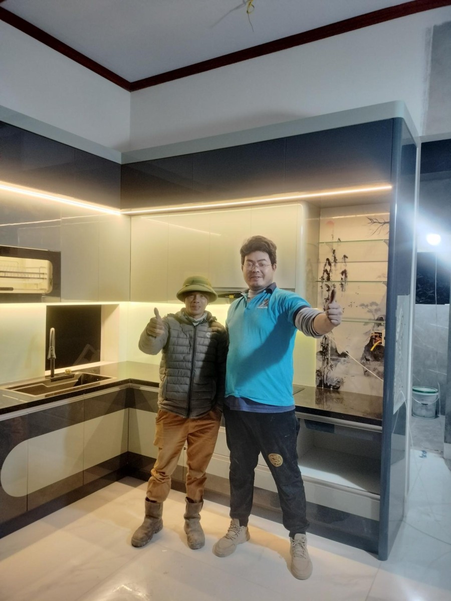 Bộ tủ bếp và tủ lavabo cánh boom tại nhà anh Thành ở Nam Định không chỉ là một phần của không gian sống mà còn là điểm nhấn nổi bật với thiết kế hiện đại và sự tinh tế trong từng đường nét. Cùng Xuyên Việt chiêm ngưỡng thành quả lao động sáng tạo tuyệt vời dưới đây nhé!