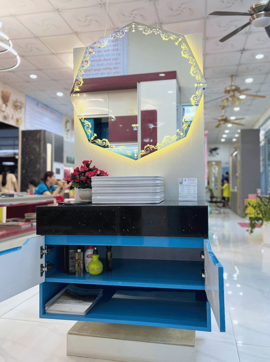 Đơn giá đã bao gồm: Tủ lavabo, khung gương, mặt đá (chưa bao gồm chậu, vòi, xiphong, phí vận chuyển và lắp đặt)